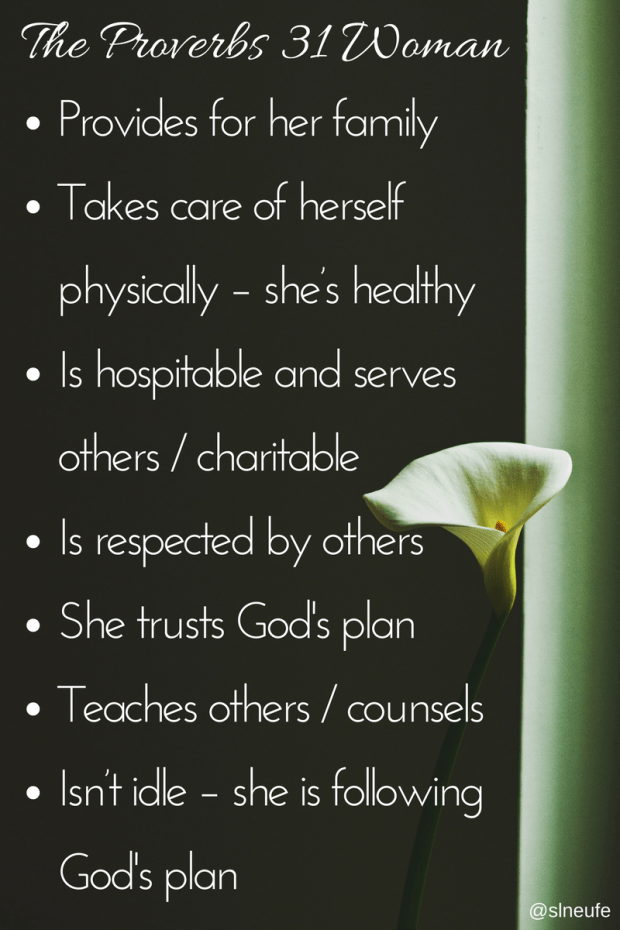 I am so blessed by the women God has placed in my life. These women mirror characteristics of the Proverbs 31 women. Their example and words of encouragement have shown me that I don’t have to be some “Superwoman” with “super-human” strength. They just point me to Jesus and remind me of the woman He is calling me to be. Just like the Proverbs 31 woman, Jesus calls me to be trustworthy, provide for my family, be healthy, teach others by setting an example and speaking wisdom into their lives, use my time wisely, and most of all love and respect HIM with all my heart, mind, soul and strength.