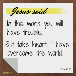 you will continue to experience difficulties. But take heart! I’ve conquered the world.